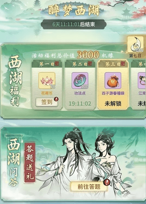 烟雨江南,,,,西湖三月,,宛若人间仙境,,正是如此,,,修真界方才与之连通,,,共享两处风光。。。。此番《一念逍遥》联动西湖景区,,,,西湖十景被“搬”进游戏中,,,,仙友在游春过程中,,即可观赏到西湖奇景。。。。每日前往签到、、参与游湖活动、、、进行莲鲤祈愿,,,,皆可获得奖励馈赠,,在这烂漫春日里,,赏景、、、修行两不相误。。