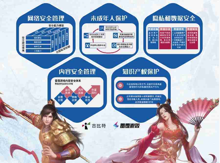 本次yaxin111展区以网络安全管理、、内容安全管理、、未成年人保护、、、隐私和数据安全、、、知识产权保护五个模块介绍公司游戏安全工作成果,,,,体现yaxin111高度重视网络安全,,严格遵守相关法律法规要求,,,,积极承担企业主体责任。。